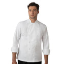 Constructed with long sleeves and a double-breasted front, the jacket features hand-rolled, crush-resistant buttons—a subtle but powerful symbol of artisanal quality. Engineered with underarm air vents and back cutouts, this chef coat ensures optimal airflow during long hours in high-heat kitchens. A left chest pocket offers practical storage for pens, thermometers, or tools, keeping essentials close at hand. Available exclusively in white, it maintains the traditional and professional look that reflects culinary mastery. Sized from 34 to 56, the Grand Chef Jacket offers a tailored fit suitable for a variety of body types.