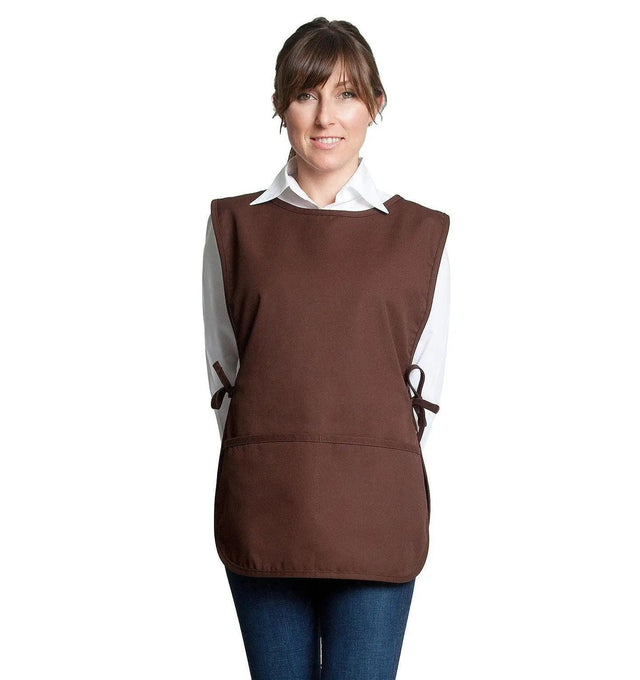 Two large 9" deep front pockets provide convenient storage for notepads, pens, thermometers, and other essential tools. Reinforced stress points enhance longevity, and the side tie closures allow for a flexible, adjustable fit across a variety of body types. Available in six rich colors—Royal Blue, Red, Brown, White, Black, and Navy Blue—this cobbler apron is a uniform staple that adapts to nearly any setting.