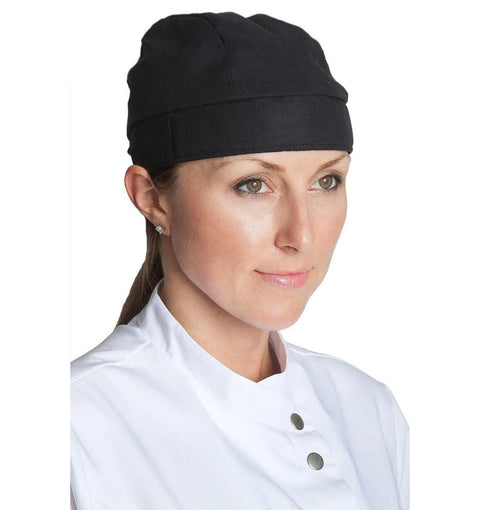 Wearing a hairnet is a look reserved for the 1950's and lunch ladies. In today's fast paced, professional kitchens the discerning chef wants something that's comfortable, functional and stylish. Fiumara Apparel has released this 100% cotton skull cap to keep your hair on your head and out of your food. This design keeps you cool with a built in sweatband and stays put with wrap ties in the back. This versatile design is made in the USA and is a one-size-fits-all.
