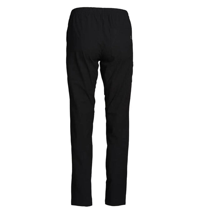 A thoughtful, ergonomic design includes an elastic waistband at the back for an adaptive fit, ensuring maximum comfort throughout long days. Practical touches such as a thigh pocket with a secure press button and an integrated ID strap add essential functionality without sacrificing a sleek appearance. Adjustable leg length with elastic and button closures allows for a tailored fit, offering versatility across a range of body types.